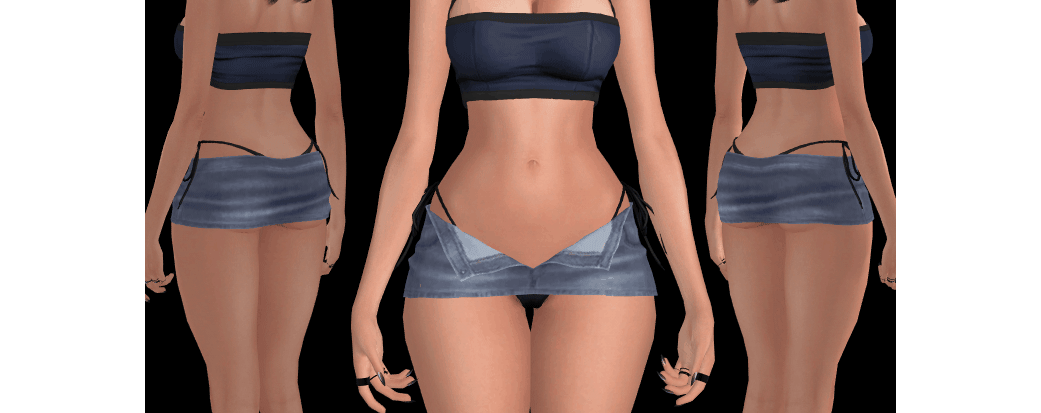 A cute hand-painted denim mini skirt with an included bottom bikini underwear accessory.